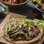 This popular street food combines succulent beef, crisp vegetables and sweet and savoury hoisin sauce rolled up in a soft, chewy green onion pancake. It’s a perfect combination.